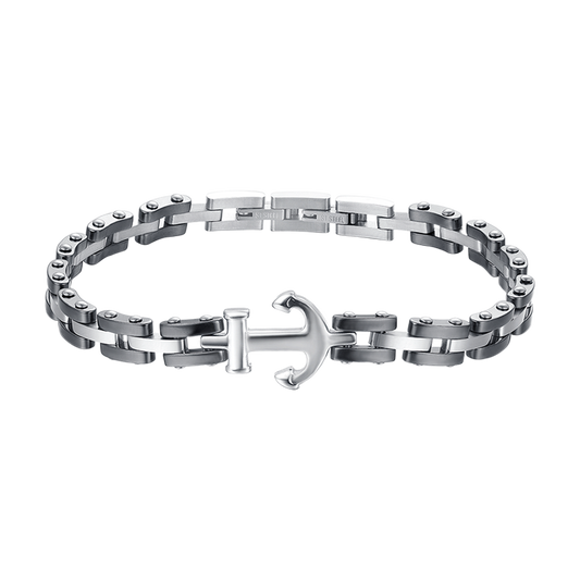 BRACCIALE UOMO IN ACCIAIO IP ROSE CON ELEMENTI IN CERAMICA NERA ED ANCORA
