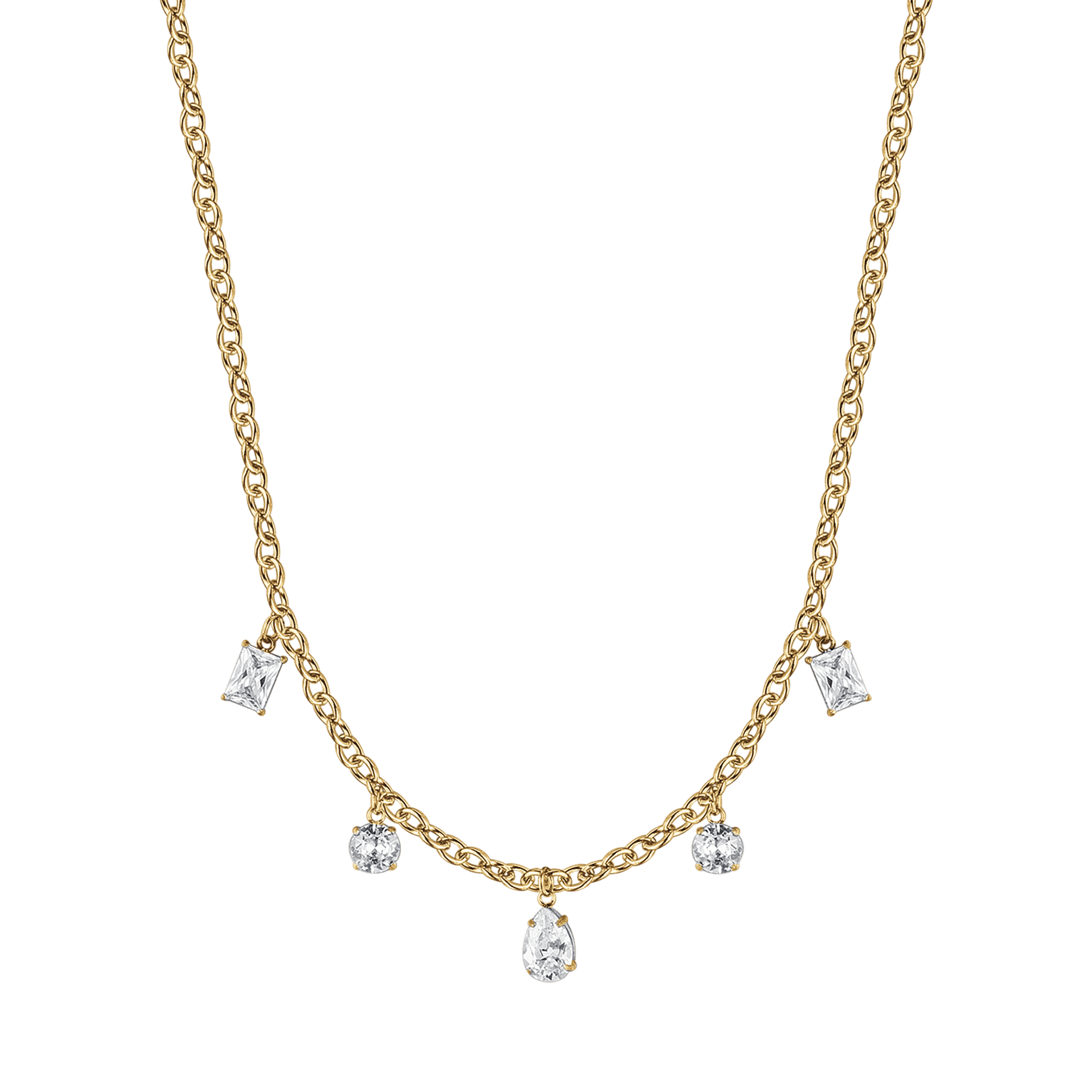 Collana in acciaio dorato con cristalli bianchi