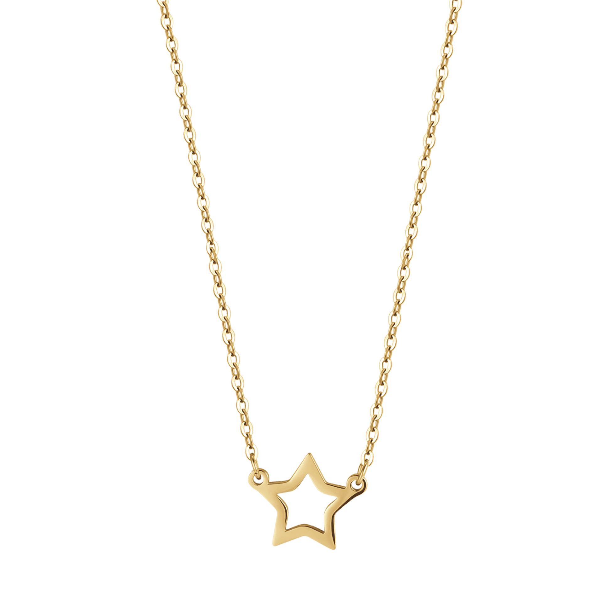 Collana in acciaio dorato con stella. Lunghezza: 40 + 5 cm.